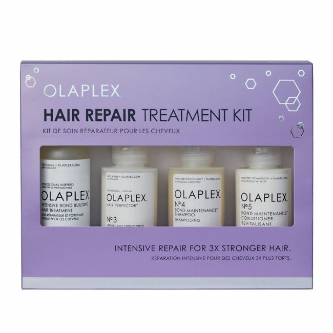 The Olaplex fourpiece Christmas Hair Repair Treatment Kit includes a two-part system of pre-shampoo treatments for weekly use to repair all levels of damage and for visibly healthier hair.The set also contains travel sizes of No.4 Bond Maintenance Shampoo and No.5 Bond Maintenance Conditioner.