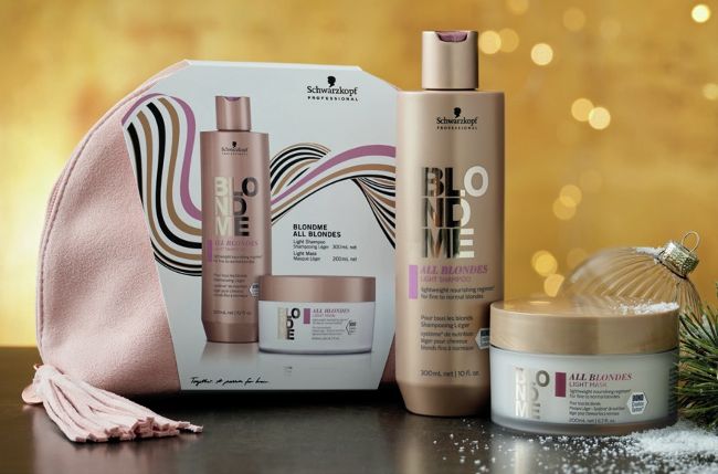 Schwarzkopf Professional’s range of festive offerings includes BlondMe gift sets. Clients can choose from an All-Blondes Light set that features a shampoo or treatment with a mulberry silk protein complex, for fine to normal hair; or an All-Blondes Rich set with a cashmere protein complex, which is an intense nourishing regime for normal to coarse blonde hair. RRP: €34.20 schwarzkopf-professional.com