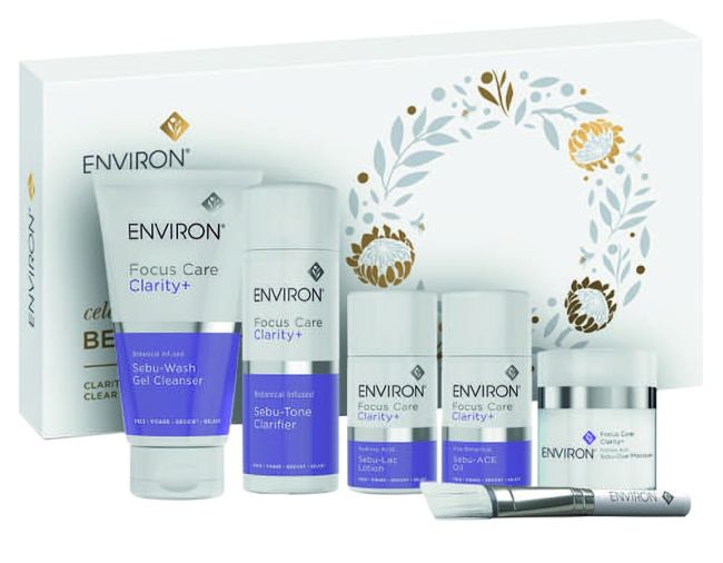 There are seven gift offerings from skincare brand Environ, including the Clarity + Clear Confidence set.The products promise to tackle breakouts, while being gentle on sensitive skin, and feature a three-phase system that assists in improving the appearance of blemishes and related concerns.
